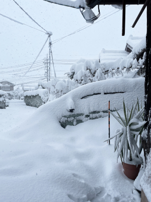 これは朝8時頃の写真です。6時頃に一度雪を下したそうです😓